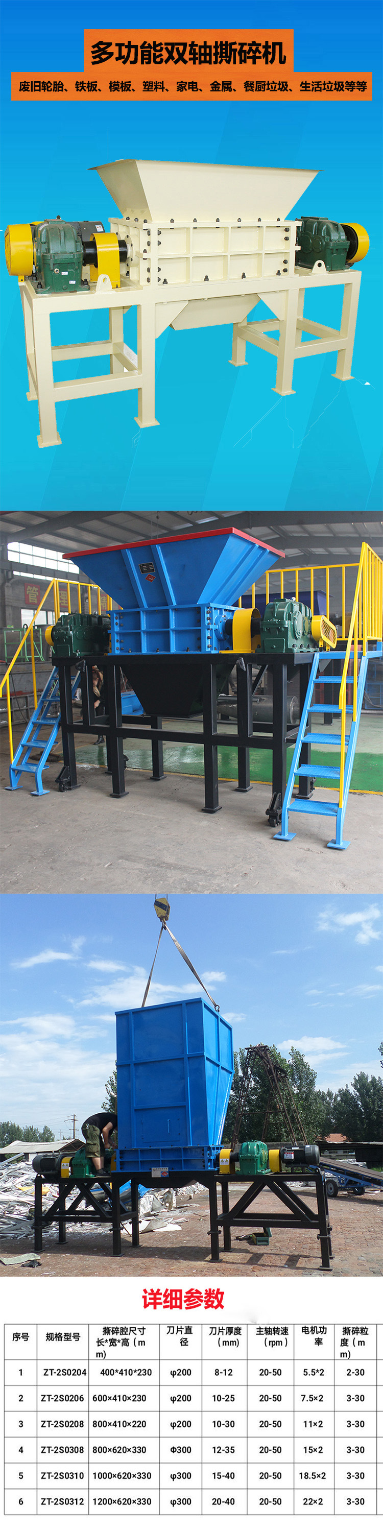 雙軸撕碎機-廣泛應用于塑料制品、廢舊塑料、木材、廢舊輪胎、廢舊金屬、廢舊家電等相關固廢利用領域。整機模塊化設計,根據不同物料特性及產能需求,配置相應的齒形結構、刀體排布、刀具材質及箱體尺寸。